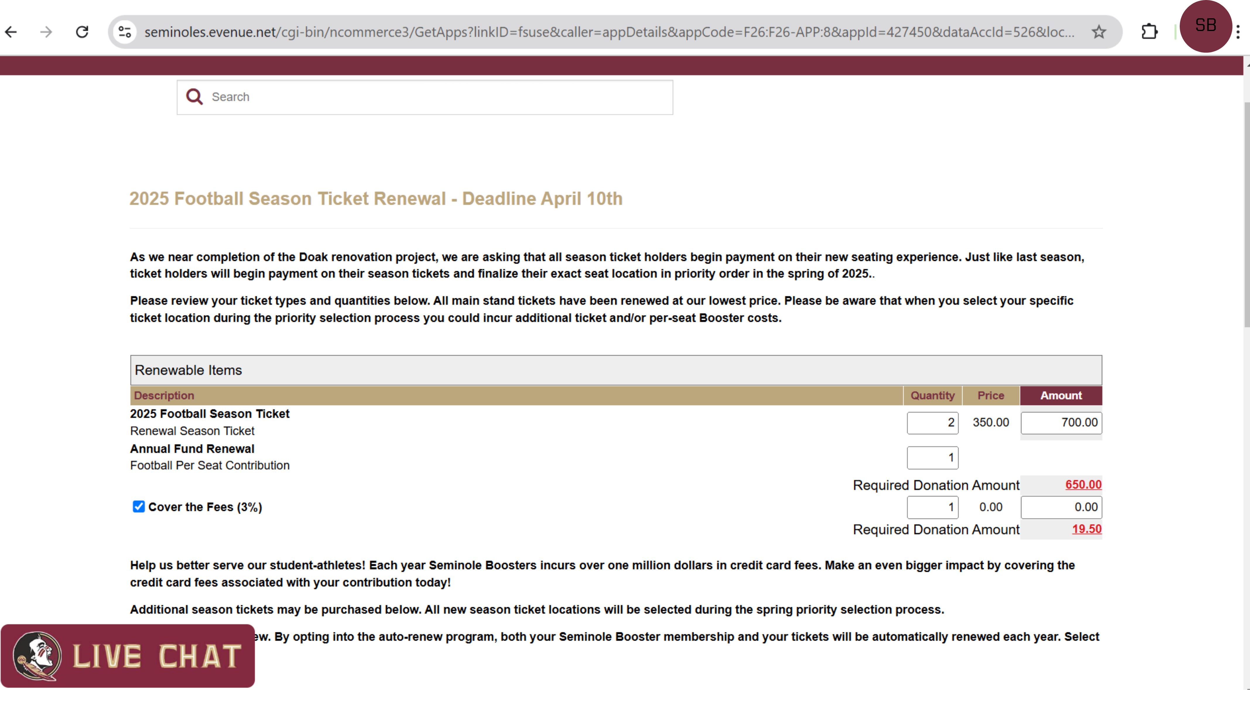 Seminole Boosters spends over $1 million per year on credit card fees, so we are offering members the opportunity to contribute those funds so we can provide more for our student-athletes.