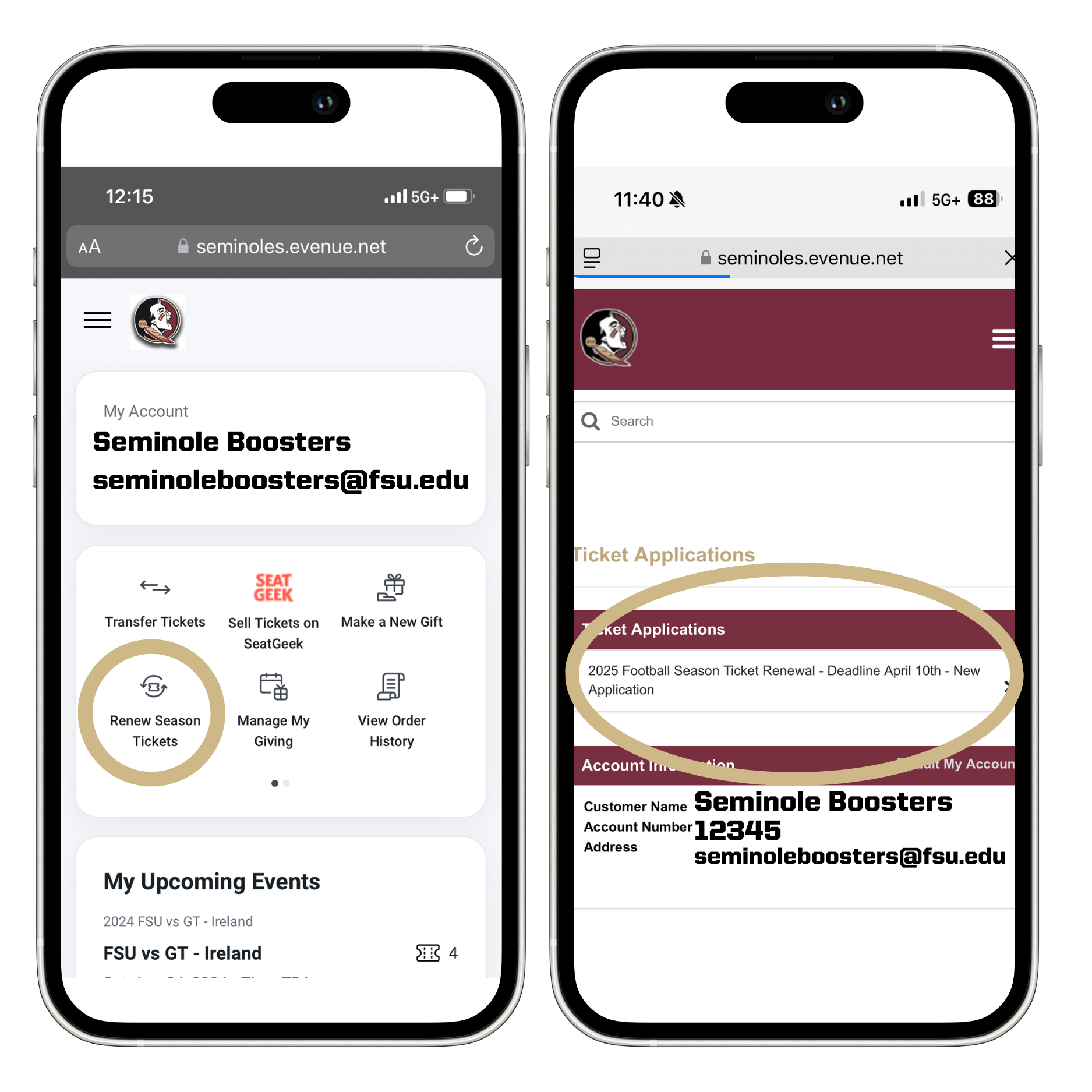 TIP: You can also access your Seminoles.com account through the FSU Game Day app. Search your mobile app store to download the app today!