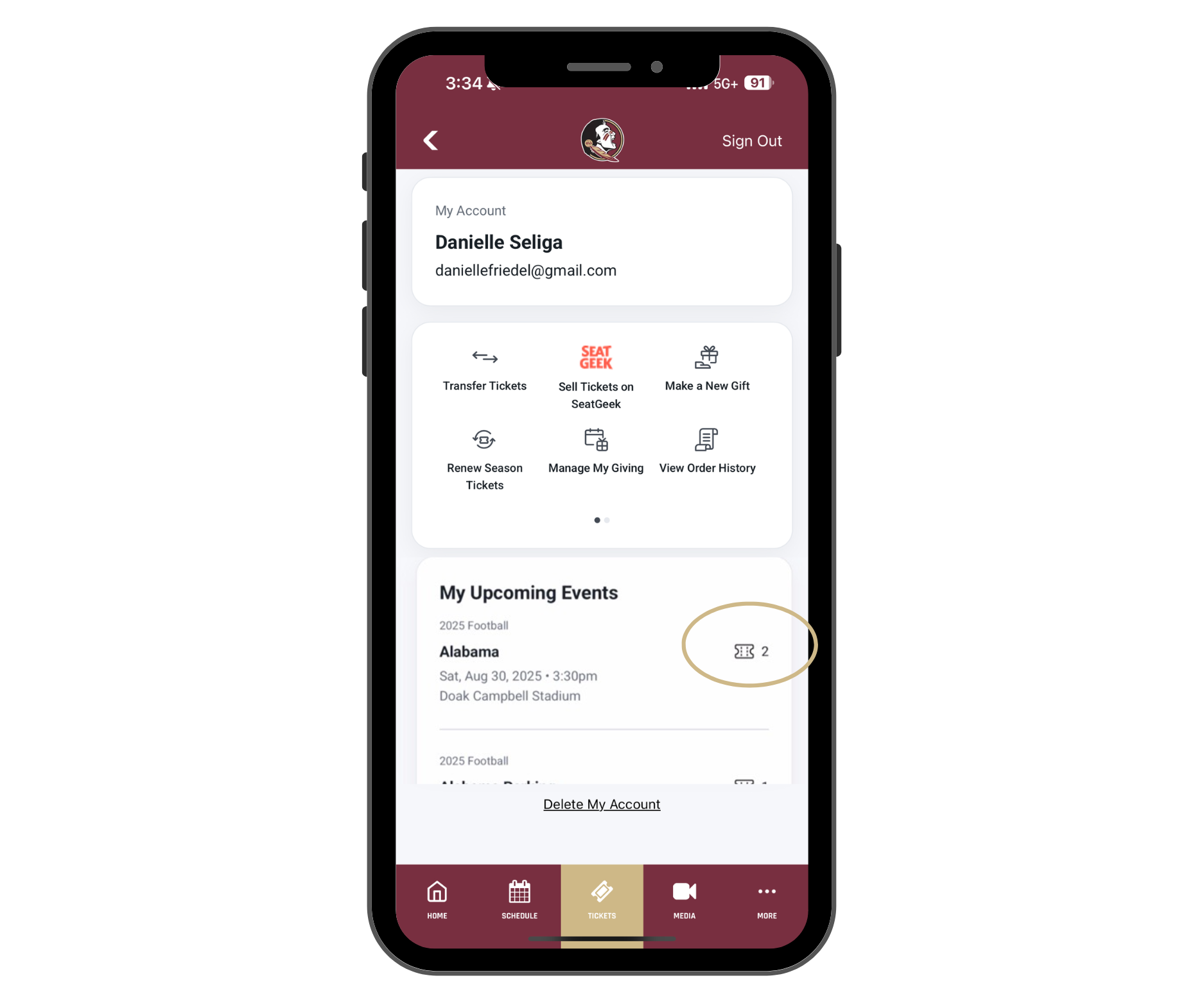 1) Through your Seminoles.com account